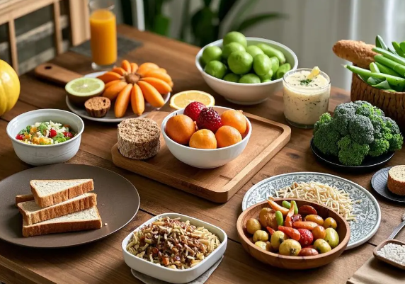 最后,多吃富含膳食纤维的食物,像全谷物、新鲜水果和蔬菜。每天吃够不同颜色的蔬菜和水果,能摄入更丰富的营养成分。还可以把精米面换成部分全谷物,比如糙米、燕麦等,让肠道动起来。