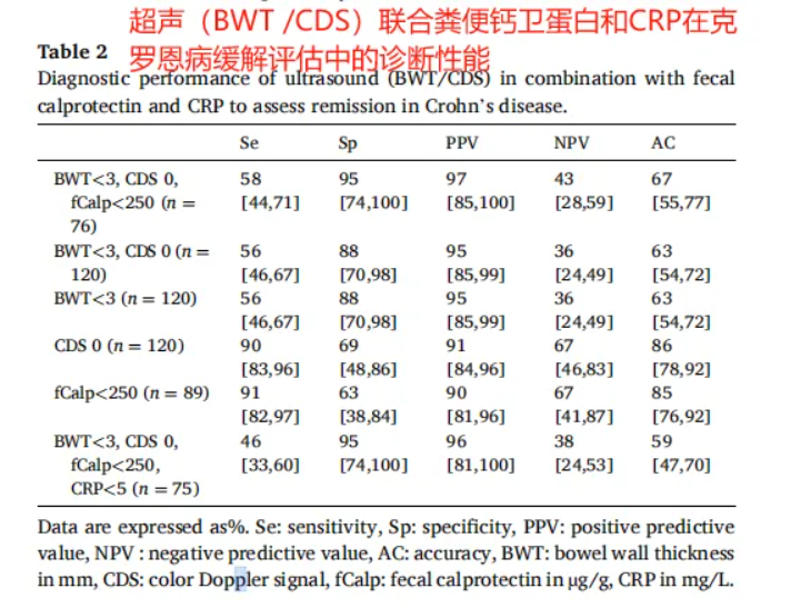 FC<250μg/g+BWT<3mm+无CDS的诊断性能Se58%、Sp95%、PPV97%、NPV43%。