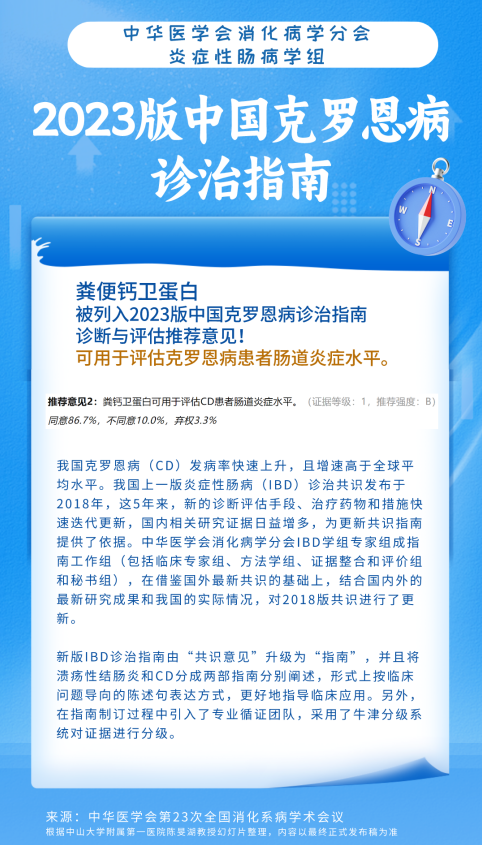 粪便钙卫蛋白被列入2023版克罗恩病诊治指南推荐意见!可用于评估克罗恩病患者肠道炎症水平。