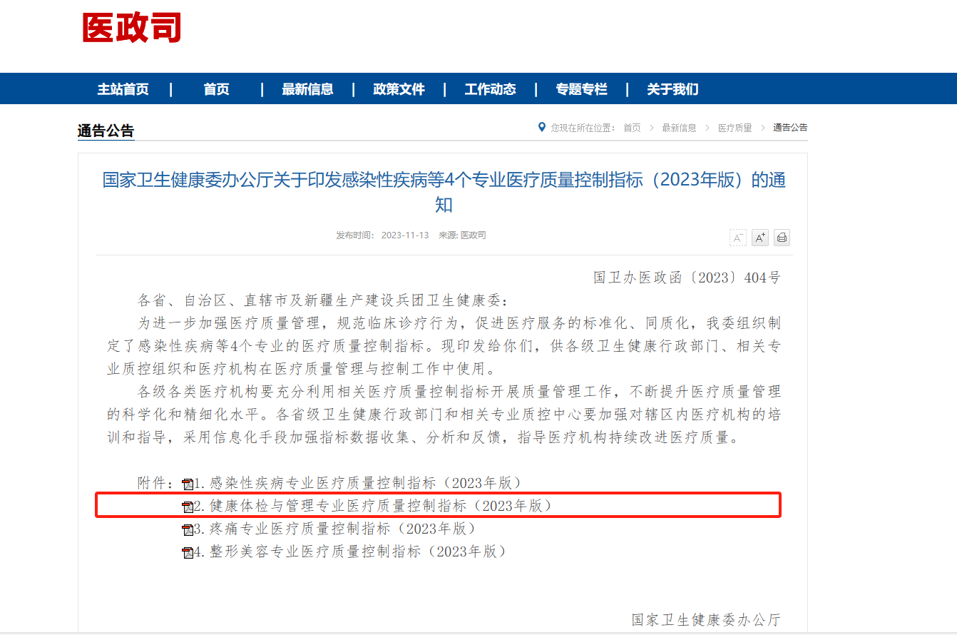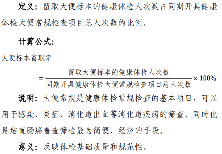 2023年11月8日,国家卫生健康委办公厅发布“国家卫生健康委办公厅关于印发感染性疾病等4个专业医疗质量控制指标(2023年版)的通知”,“大便标本留取率”被列为《健康体检与管理专业医疗质量控制指标》之一。